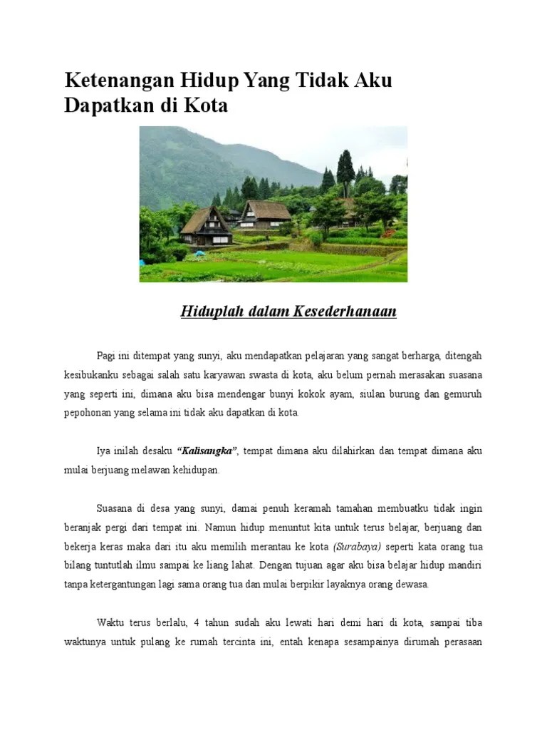 Mereka hidup mandiri lantaran orang tuanya telah meninggal dunia atau bercerai. Yang masih menggantungkan diri kepada orang lain terutama kepada keluarga (orang tua) dan masih sedikit sekali yang sudah dapat hidup mandiri, inipun masih terbatas pada anak tunagrahita ringan. Bahan makanan untuk dimasak telah habis. orang tualah yang telah memungkinkan mereka lahir, hidup dan berkembang di bumi ini. hidup sendiri, hidup mandiri adalah sebuah tantangan yang harus saya lewati selama 3 tahun di masa remaja saya. Lo masih punya orang tua, temen, saudara, dll. Terus memberikan semangat, itulah yang dilakukan walikota malang, drs. tanpa kemandirian dan keberanian, tak mungkin kotaro sanggup melakukan semuanya itu. Ia lega bisa mengambil hikmah dari setiap fase kehidupan yang dilewatinya. Kotaro terpaksa hidup sendiri di usia sangat muda, namun bisa melanjutkan hidup bagai orang dewasa. Ia pun mulai merasakan perjuangan yang sama, seperti yang kamu alami dahulu. Ayo buang jauh jauh rasa tidak percaya diri lo karna hidup "sendirian" ~ mengisi formulir pernyataan tidak memiliki npwp.